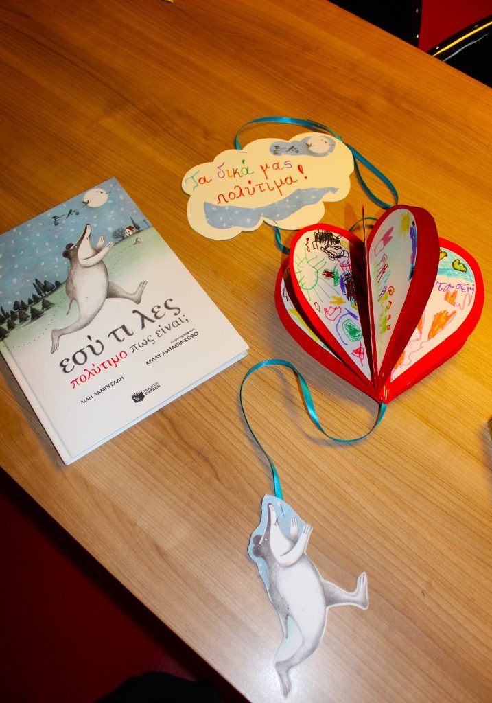Με τέχνη άφησε τις σελίδες του βιβλίου της Λίλης Λαμπρέλλη “Εσύ τι λες πολύτιμο πως είναι;” των εκδόσεων Πατάκη και τη Δευτέρα 13 Φεβρουαρίου 2022 συνάντησε 30 παιδιά του 17ου Νηπιαγωγείου Χανιών για να τα ρωτήσει ποιο είναι το πιο πολύτιμο πράγμα στον κόσμο;