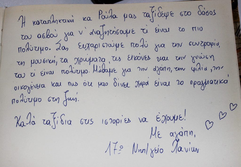 Εμείς με τα παιδιά τον ακολουθήσαμε, ακούσαμε όσα άκουσε και του δώσαμε και τις δικές μας απαντήσεις.