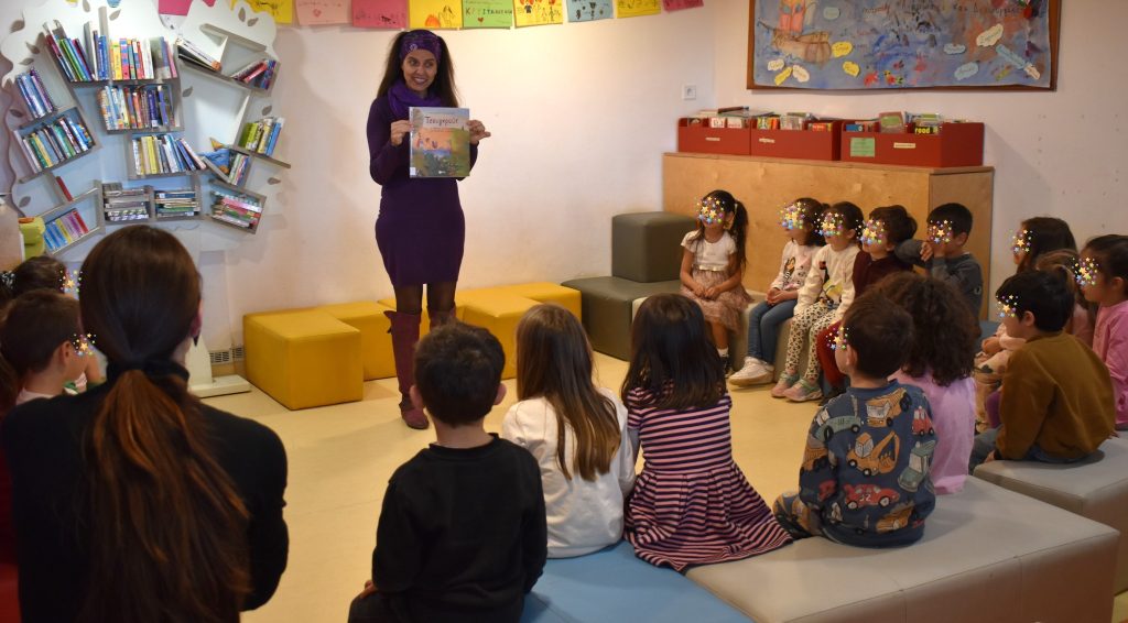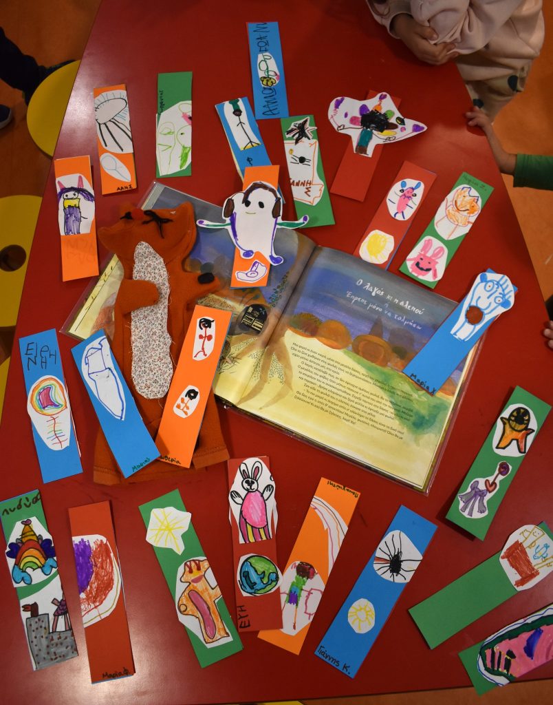 Βοηθός μας, μια κατεργάρα γαντόκουκλα στον ρόλο της αλεπούς. Γέλια, ήχοι, τραγούδια – ακόμα και ροκ, διάλεξαν οι μικροί μας φίλοι – και υπέροχοι σελιδοδείκτες φτιαγμένοι με μεράκι απ’ τα χεράκια τους!