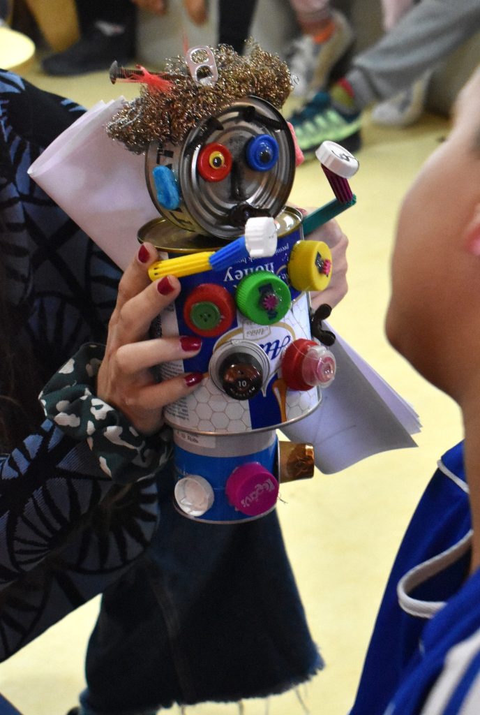 Τέλος μέσω βιωματικής εμπλοκής των παιδιών, δημιούργησαν τους ήρωες της “Τενεκεδούπολης” καθώς και κατασκευές από τη θεματική παρουσίαση με την καθοδήγηση από την εκπαιδευτικό Χριστίνα Σαλαγιάννη, χρησιμοποιώντας συσκευασίες και ανακυκλώσιμα υλικά.
