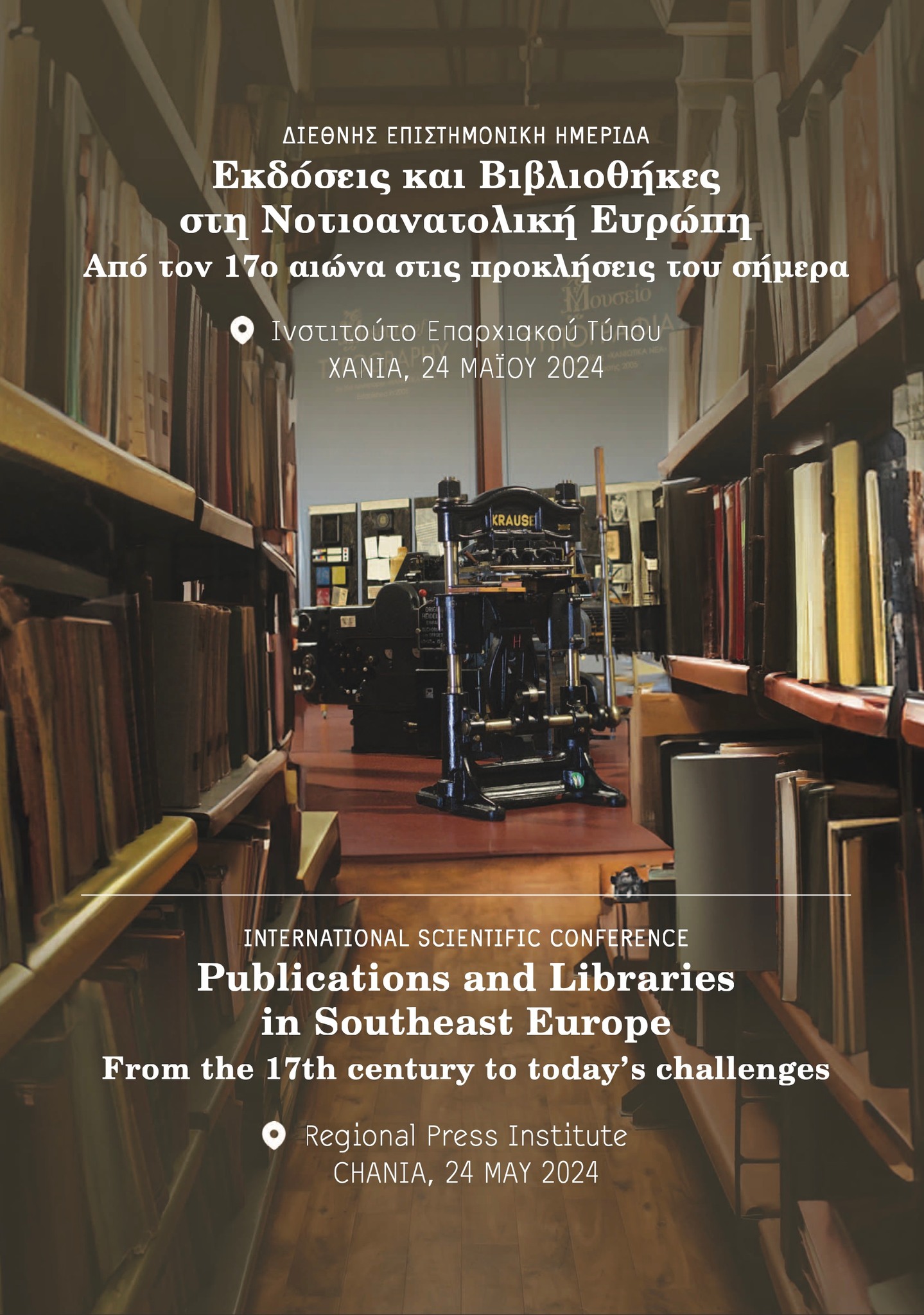 Την Παρασκευή 24 Μαΐου 2024, το Μουσείο Τυπογραφίας Γιάννη και Ελένης Γαρεδάκη διοργανώνει Διεθνή Επιστημονική Ημερίδα, με τίτλο “Εκδόσεις & Βιβλιοθήκες στη Νοτιοανατολική Ευρώπη: Από τον 17ο αιώνα στις προκλήσεις του σήμερα”, στο Ινστιτούτο Επαρχιακού Τύπου.